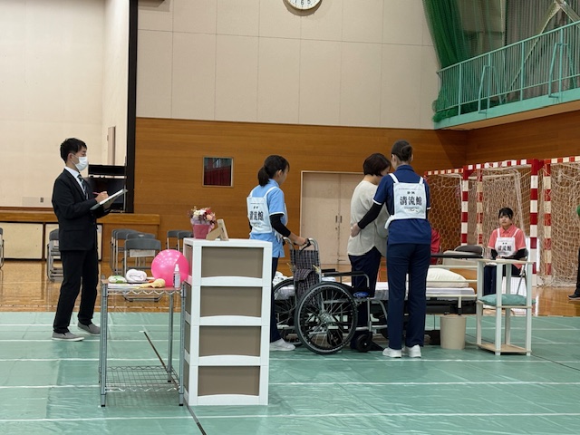 福祉科3年生が、全国高校生介護技術コンテスト(産業教育フェア福島大会)に出場しました。静岡県大会、東海地区大会を勝ち抜き、静岡県の高校として初めて東海地区の代表になりました。福島県で行われた全国大会では、要介護者の健康状態、心身機能、身体構造や、個人因子、環境因子等の課題を分析し、介護の技術につなげることができました。小さな気遣いが大きな安心につながることを胸に刻み、優しい声掛けと要介護者に寄り添った支援を、1つ1つていねいに行ったとの言葉が出場した3人から聞かれました。介護の基本を大切に、温かい介護に努め、日々の学びを生かして競技大会に臨み、奨励賞に選ばれました。よくがんばってくれました。全国レベルで本校の福祉教育が高く評価されたことは、学校にとってもたいへん喜ばしいことでした。応援ありがとうございました。