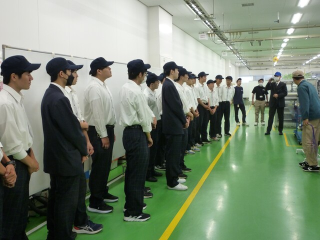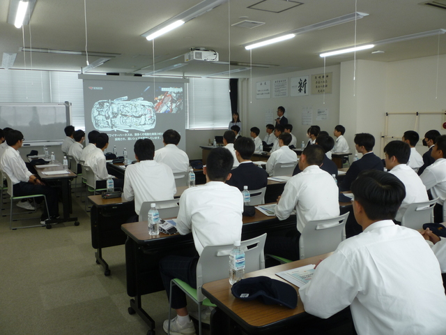 ワイヤーハーネスを組み立てる機械の研究・開発している部署を見学させていただきました。最新の機械を見学したり、機械や施設の説明を聞いたりと生徒たちにとって充実した企業見学となりました。