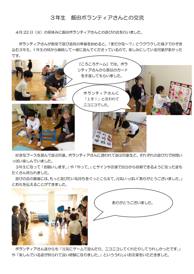 小学部3年生 飯田ボランティアさんとの交流
