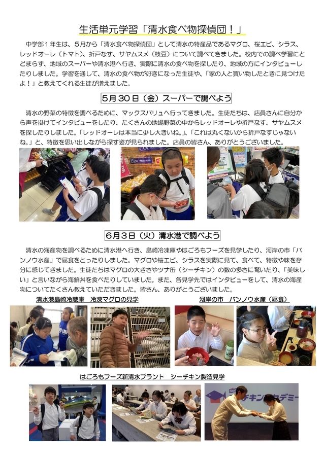 中学部1年「清水食べ物探偵団!」