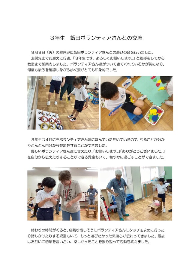 小学部3年生 飯田ボランティアさんとの交流