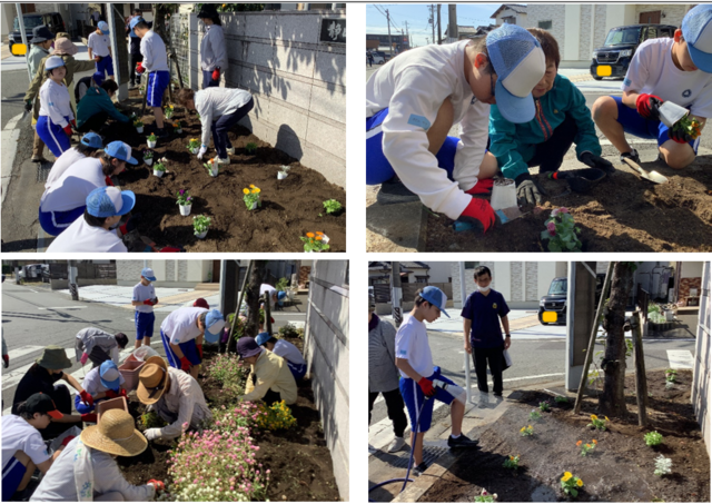 中学部美化委員会が地域ボランティアさんと進めた、今年度の花壇整備(全7回)🌼