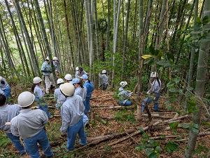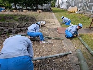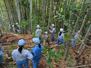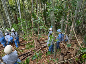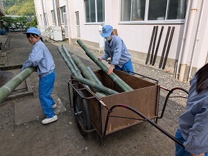 公開日 2025年05月19日 令和7年5月16日㈮ 科目「課題研究」にて、環境科学科3年緑化系列の生徒が放任竹林問題を解決すべく竹の伐採・粉砕準備を行いました。 粉砕した竹は、商品開発するための材料として乾燥工程に入ります。約90キロ分の竹を伐採する事ができました。