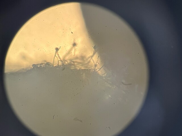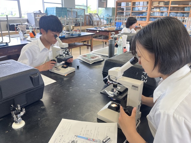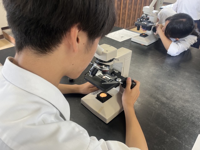 公開日 2025年06月10日 令和7年6月9日(月)1時間目科目「食品微生物」にて顕微鏡を使って麹菌(コウジカビ)の観察を行いました。 顕微鏡を使い、米麹についた麹菌の菌糸や子実体を確認することができました! この米麹は、先週のみそを作る際に使用したもので、このような微生物のおかげでみそができているのかと驚きました。