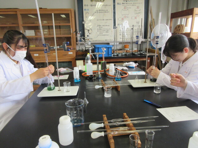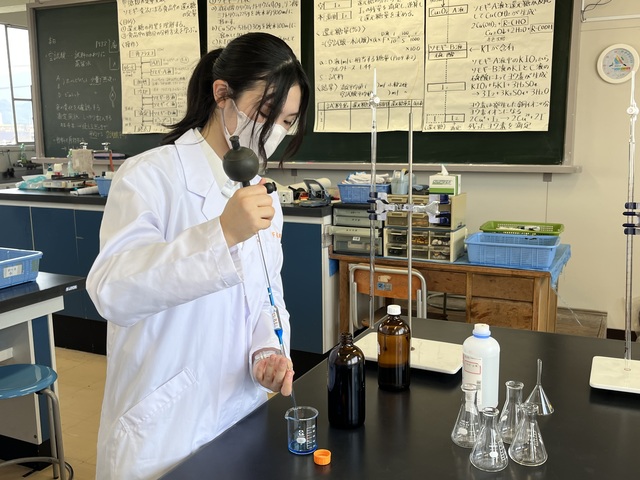 公開日 2025年06月26日 令和7年6月19日(木)24日(火)科目「食品化学」にて「ソモギー変法」という還元糖の定量実験の空試験・本試験を2日間にかけて行いました。 とても時間がかかる実験でしたが、溶液の色の変化に注目しながら、慎重に操作を行いました。 いろいろな清涼飲料水に含まれる還元糖、果糖ぶどう糖液糖って知っていますか? 糖分の多いペットボトル飲料の飲みすぎには注意しましょう!