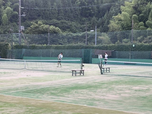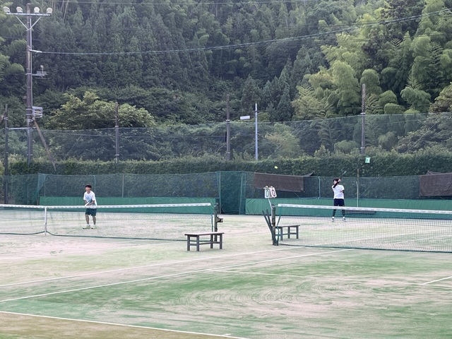 公開日 2025年06月24日 令和7年6月15日(日)15:30~男子テニス部は千代テニスクラブにて行われた「千代TC高校生チャレンジ大会ダブルス」に参加しました。本校では代表として1年生と2年生で組んだ1ペアが出場しました。大きな結果を残すことはできませんでしたが、1年生は初めての大会でした。 今回の大会の反省を存分に生かし、これからも練習に励んでいきたいです。