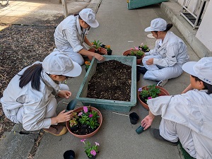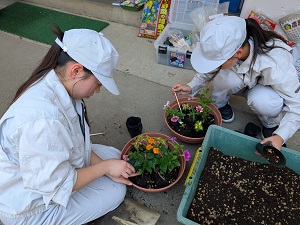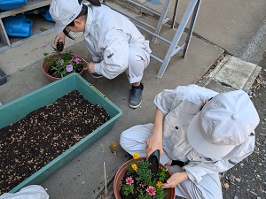 公開日 2025年07月02日 令和7年6月26日㈭ 環境科学科2年デザイン系列の生徒が丸プランターを作りました。 自分たちが播種した苗が大きく成長し、色合いや草丈、全体的なバランスを考えて植え付けることができました。