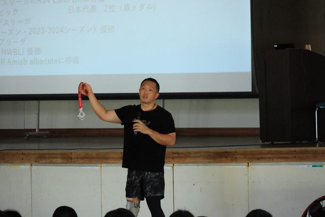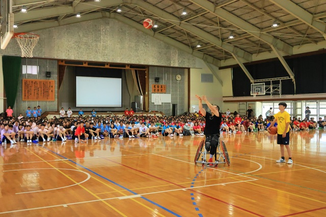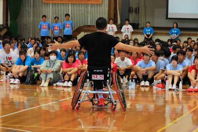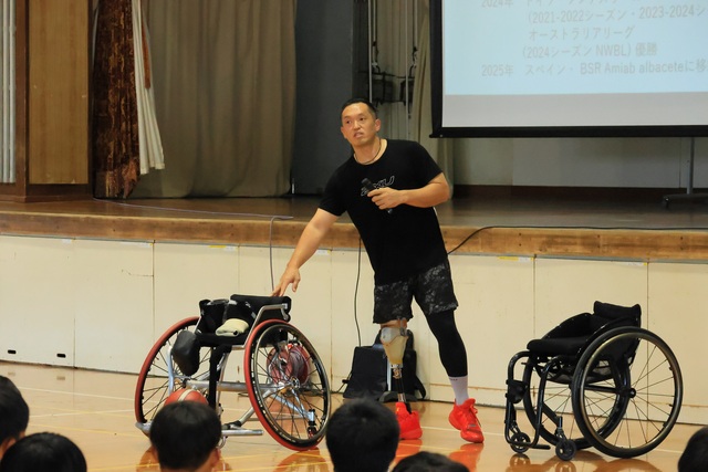 生徒とのフリースロー対決や質疑応答を終え、最後に2028年に開催されるロサンゼルスパラリンピックに向けた意気込みを語ってくださいました。40歳を超えても世界に挑戦する気合と努力の姿がとてもかっこよかったです。