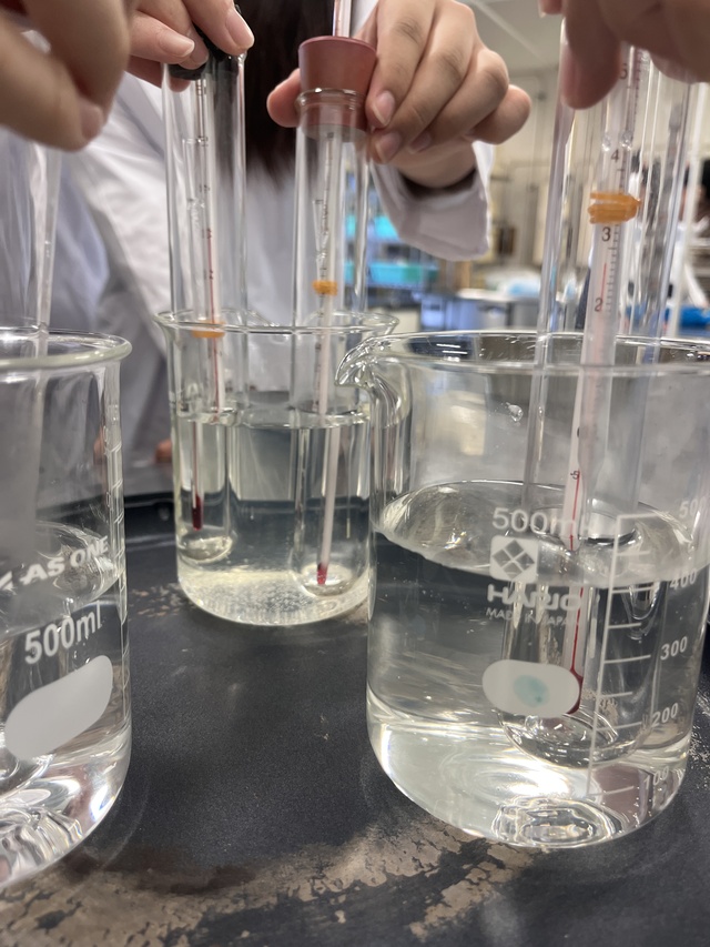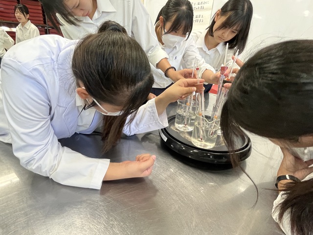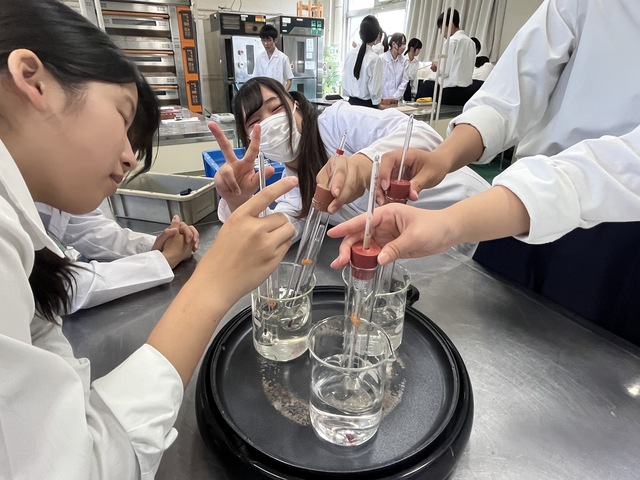 令和7年9月25日(木)1・2時間目科目「食品化学」にて食品科学科栄養系列の2年生が「油脂の融点の測定」を行いました。