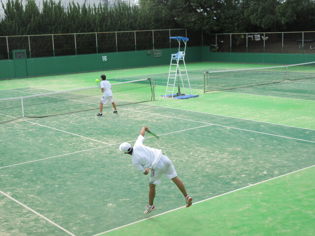 公開日 2025年10月02日 令和7年9月28日(日)草薙庭球場にて市民大会が行われ、男子テニス部6ペアが参加しました。結果は3ペアが1勝することができました。まだまだ課題がありますが、1ヵ月後の新人戦のダブルスに向けて練習を重ねていきたいです。
