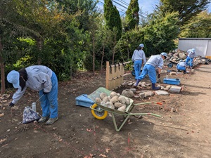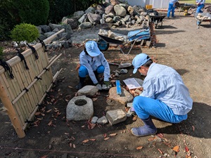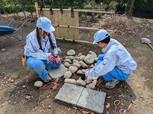 公開日 2025年10月06日 令和7年10月2日㈭ 科目「造園施工管理」にて、環境科学科3年緑化系列の生徒が、延べ段の施工を行いました。 延べ段は水平を取るのはもちろんですが、石の配置にも様々な禁じ手があり見た目以上に難しく、様々な形の石を面を見ながらよく観察し仮置きしていきました。