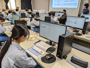 公開日 2025年10月28日 令和7年10月16日㈭~11月6日㈭までの期間中に4回 科目「造園施工管理」にて、環境科学科3年緑化系列の生徒が高度外部人材活用事業でCADを学びます。 講師の先生から、より専門的なCADの操作方法やCADの重要性を教えていただきます。庭やインテリアのデザイン系列に進学する生徒も多いため1回1回の授業がとても楽しみです。