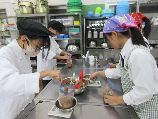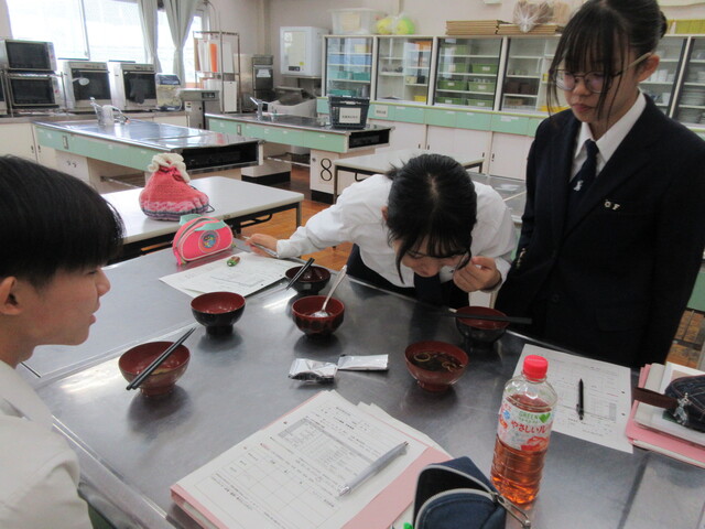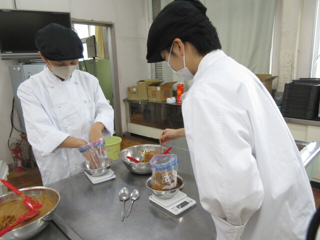 令和7年10月21日(火)、24日(金)科目2年選択科目「食品微生物」にて、2種類のみそと6月3日に仕込み発酵させていたみその官能検査を行いました。