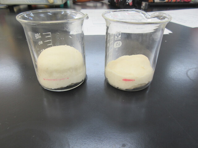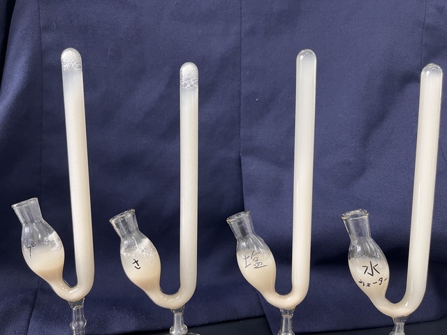 酵母の観察やアインホルン管(キューネの発酵管)を用いた酵母の栄養素について知る実験、パン生地を使った発酵実験を行いました。