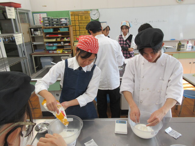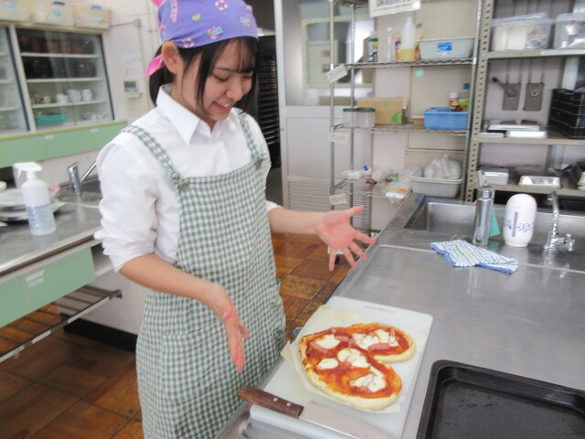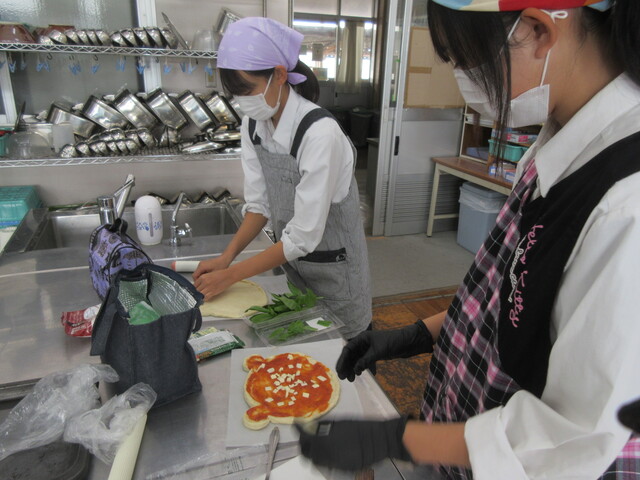 また、パン酵母を活用した食品としてピザ作りを行いました。ピザ生地を作る工程では、発酵により大きくなる様子が確認できました。食べた時のふわふわ、サクサクの食感を作っているのが微生物だと思いながら味わうピザの味はいつもと違う感じがしました。