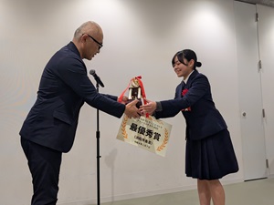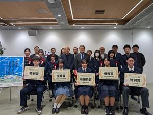 公開日 2026年02月10日 令和8年2月7日㈫ 環境科学科3年緑化系列の生徒が、理工科大主催の「高校生ものづくり・ことづくりコンテスト」に参加し、最優秀を受賞しました。 発表内容は、放任竹林で問題になっている竹を原料にしたタンブラーを製造し、環境保全に繋げようという内容で、デザインや性能など多くの検討事項を加味した発表をすることができました。