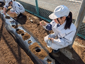 公開日 2026年02月16日 令和8年2月13日㈮ 環境科学科2年デザイン系列生徒がジャガイモの植え付けを行いました。 ジャガイモの芽の向きや植える深さに注意しながら、3種類のジャガイモを植え付けする事ができました。