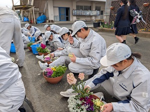 公開日 2026年02月23日 令和8年2月20日㈮ 科目「生活空間デザイン」にて環境科学科2年デザイン系列の生徒が、環境棟周辺にある花壇の除草や花柄摘みを行いました。 パンジーやストックがきれいに咲いており、いい香りに包まれながらの作業でした。 きれいにした花壇をお楽しみください。