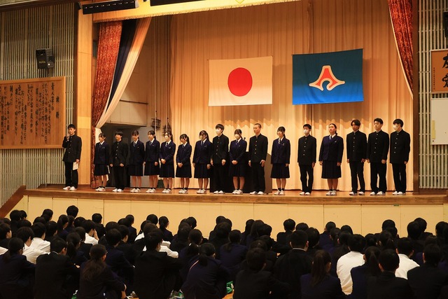 対面式では、生徒会メンバーの紹介、農業クラブについての紹介、新入生代表の挨拶がありました。