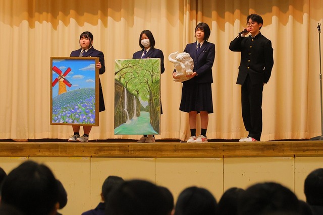 部活動紹介では、文化部、運動部、農業部すべての部活動が、それぞれの部活動の内容を作品やスライドなどで紹介しました。