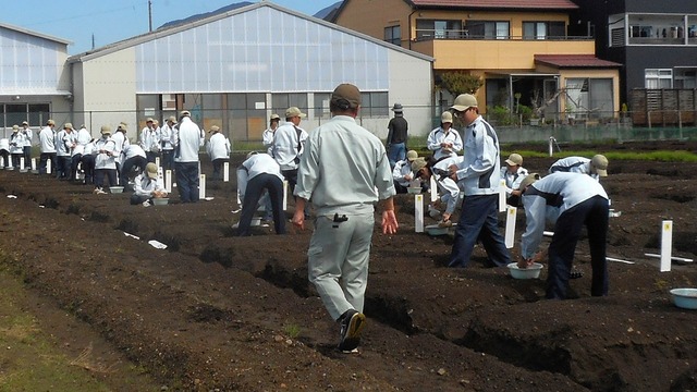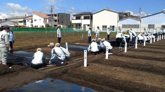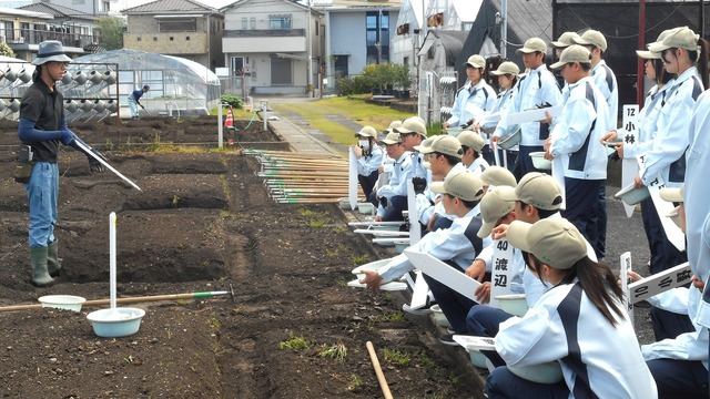 公開日 2026年04月17日 令和8年4月15日(水)、生産系の1年生が授業「農業と環境」の畑の準備をしました。 一人ひとりに畑が割り当てられて、友達と協力してそれぞれの畑に黒いマルチを張りました。この畑で、夏に向けてスイカやトウモロコシを育てていきます。