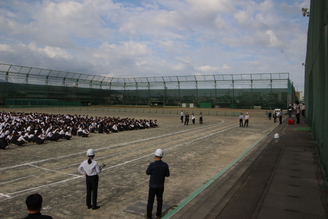 公開日 2026年04月21日 4月20日、LHRの時間に全校一斉防災避難訓練を実施しました。 先日長野県で起こった地震のニュースが地震への備えの意識を高め、生徒たちは真剣に取り組んでいました。校庭での点呼完了に要した時間も目標を大幅に上回る速さでした。 地震はいつやってくるのかわかりません。まずは自分の命を守れるよう、そしていざという時に誰かの力になれるよう、備えていきたいですね。