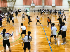 4月23日、1年生は体育館で学年レクリエーションを行いました。前半のドッヂボール大会では各クラスが熱戦を繰り広げ、最後には教員も参加し、大いに盛り上がりました。