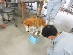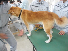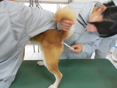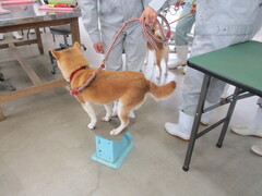 2年生の生物活用コースの総合実習で犬の体温と体重を測定しました。犬がはかり慣れており、スムーズに行うことができました。