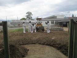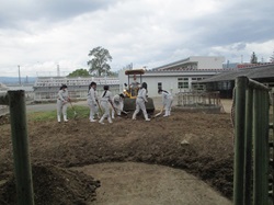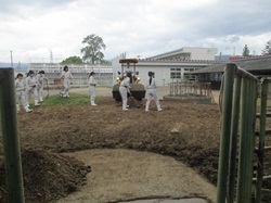 3年生の総合実習で牛の運動の場掃除を行いました。