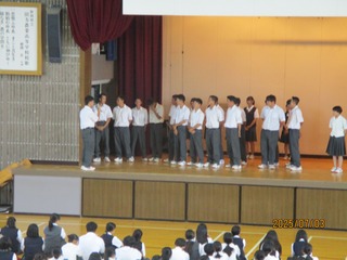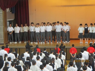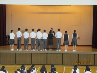 令和7年7月3日(木)本校体育館にて表彰式・壮行会が行われました。