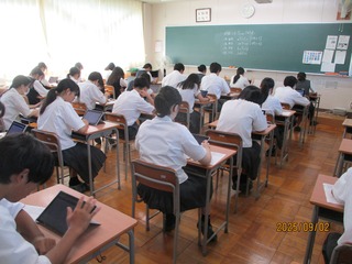 9月2日(火)1・2年生は「学びの基礎診断」のテストが実施されました。