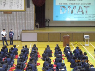 公開日 2025年12月22日 12月22日(月)防災訓練を実施しました。 火災を想定してクラスから体育館へと避難しました。 体育館では国際医療福祉大学熱海病院の秋津さま、岡山さまより防災講話を頂きました。