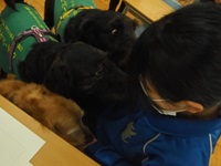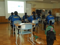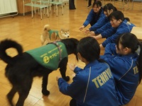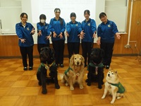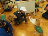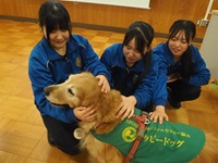 NPO法人日本アニマルセラピー協会浜松本部の方を講師にお招きし、アニマルセラピーが高齢者や障がい者の心身への効果についてご講義をいただきました。動物による癒し効果によって幸せホルモンが分泌され癒しを感じることができる一方で、動物も同時に幸せホルモンが分泌されなければならないことがわかりました。また、認知症の方が実際にセラピー犬と触れ合うことで、発語が増えるケースも紹介していただきました。実際にセラピー犬と触れ合うことで幸せホルモンが分泌され、心が癒されるとともに、幸せな気持ちになれることを実感しました。