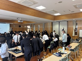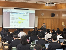 6限授業は、「講演を聞いて文章にまとめよう!」。先生方のお話を聞いて、適切にメモを取り、講演タイトルや質問内容を考えました。これから、いろいろな社会人の方のお話を聞いて学びます。聞く力や理解力を身につけて、この1年間の学びが大きな成果につながるといいですね!