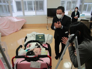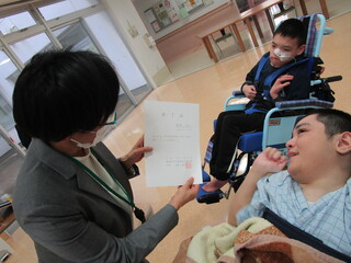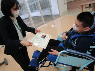 公開日 2025年03月28日 3月18日に、令和6年度訪問教育小学部の卒業式を2病棟で行いました。 今年は、2名の小学部児童が卒業しました。 3月19日に、令和6年度訪問教育修了式を1・2病棟で行いました。 各病室やデイルームで、修了式を行いました。修了式の後には、表彰式も行いました。