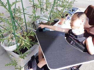 7月15日(火)、校舎のとある場所にすくすくとスイカが育っていました。中学部生活コースの生徒たちが「夏野菜を育てよう!」をテーマに5月にスイカの苗植えをしました。水やりや草取りも行い、大事に育てたスイカが今はざるの大きさくらいまでになりました。収穫時期は7月22日から24日を予定しているようです。とっても楽しみですね!