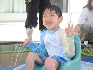 7月22日(火)、小学部の生徒たちがニコニコしながらプールに向かって行きました。水を体に掛けると最初は嫌がっていました。水の冷たさに慣れると顔の表情が一変!!!とびっきりの笑顔を見せていました。今日でプールの授業も終了です。プールさん、ありがとう!とっても気持ち良かったでーす!