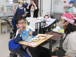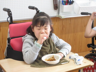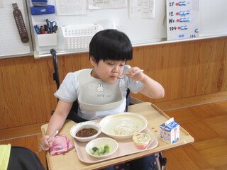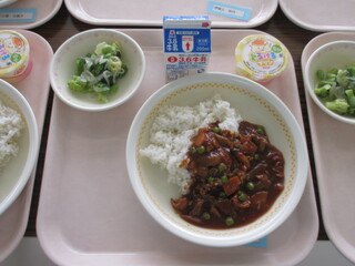 公開日 2026年04月14日 みんな大好きなハヤシライスで舌鼓を打ちました! 4月13日(月)、小学部2年生から高等部3年生は今年度初めての「給食」でした。献立は①トマトとしめじのハヤシライス②ブロッコリーのサラダ③豆乳プリン④牛乳です。みんな大好きなハヤシライスで大喜びです!どの子もおっきな口を開けて食べていました。 「人間関係は鏡、鏡は先に笑わない!」☆彡 東部特支