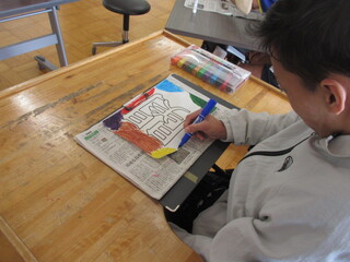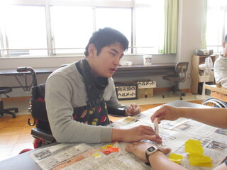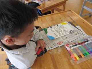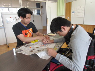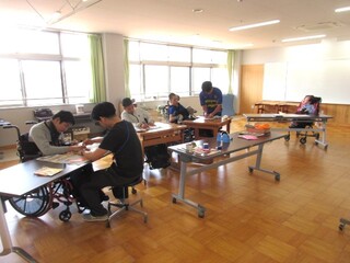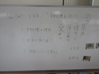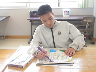 4月22日(水)、高等部1年生が教室に掲示する学年目標の文字と装飾を作っていました。前回のLHRで高等部での目標や希望などを一人ひとりに発言させて、その中からみんなで相談して文字を組み合わせて決めた学級目標が「笑伸煌関(しょうしんこうかん)」です!意味は「笑顔で伸び伸びと成長し、きらめくように輝く関係」です。とってもポジティブな意味合いの組み合わせになったと思います。