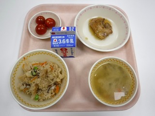 公開日 2026年04月23日 今日の献立 「ふるさと給食」(韮山特産のトマトと蜂蜜を使用) たけのこご飯 鶏肉の韮山産はちみつ焼き 韮山産ミニトマト 国清汁 牛乳 毎月23日は「ふるさと給食」 静岡産の新鮮でおいしい食材がたくさん登場します。