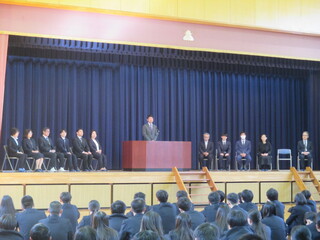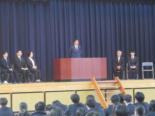 公開日 2026年04月14日 掲載が遅くなりましたが、3月27日(金)に行われた離任式の様子をお知らせします。 離任される先生方お一人お一人から、生徒たちへ温かいメッセージをいただきました。 また、生徒会より感謝の気持ちを込めて花束が贈られました。 これまで本校を支えてくださった先生方に、感謝の気持ちを伝える大切な時間となりました。 先生方の新天地でのご活躍を心よりお祈りしています。