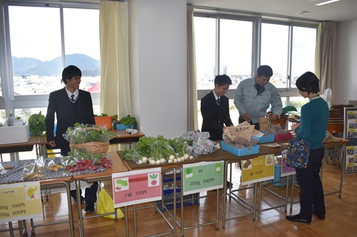 ・農園芸班は無農薬で育てたサツマイモ、里芋、ショウガなどの旬の野菜と花の苗を販売しました。野菜と花で、お客様の笑顔を咲かせることができました。