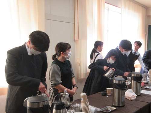 ・サービス班では、「喫茶:雫~SHIZUKU~」を出店し、プロから教えていただいた手順で淹れた、美味しいコーヒーや日本茶をテイクアウト方式で提供しました。