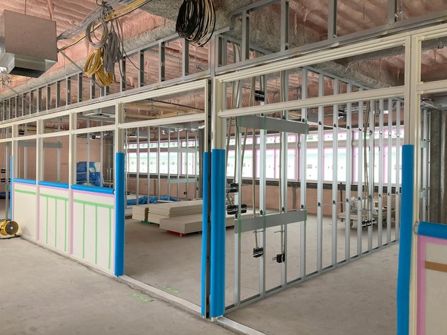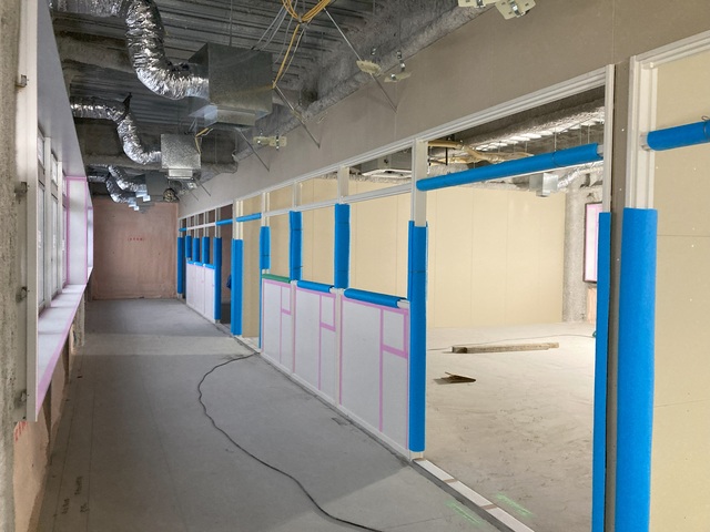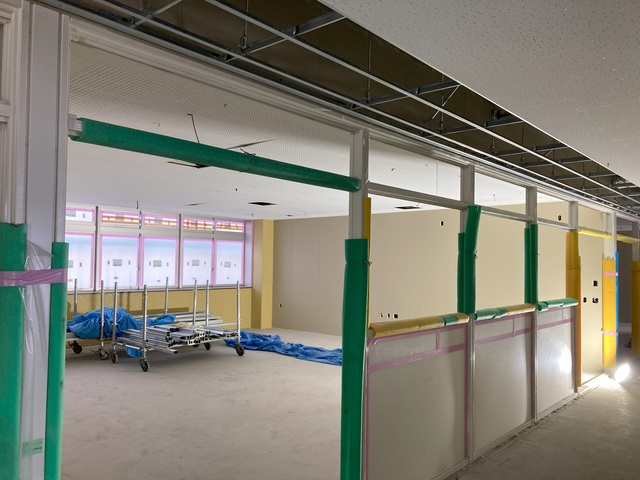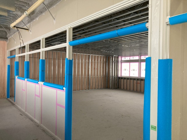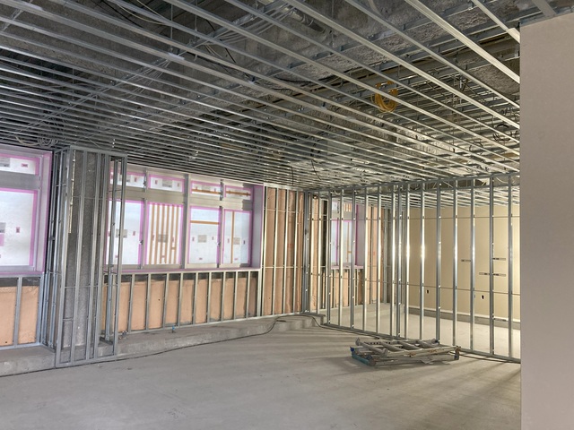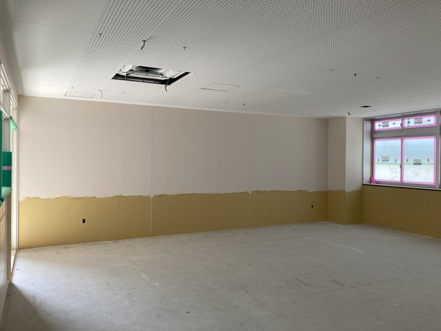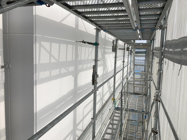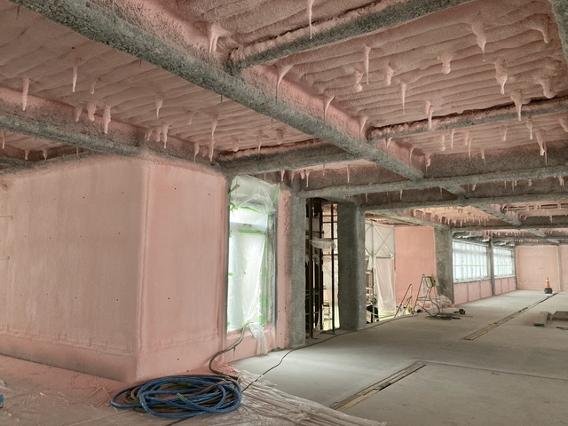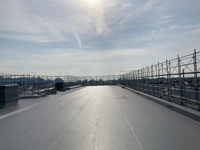 公開日 2025年06月09日 1階 天井ボード取付、内壁塗装を行いました。 2階 天井・壁部分に軽量鉄骨の取付、天井ボード取付を行いました。 3階 壁部分に石膏ボード取付、天井・壁部分に軽量鉄骨の取付を行いました。 4階 天井の梁、柱部分に断熱材の吹付、壁部分に軽量鉄骨の取付を行いました。 屋上のシート防水施工、東面外壁の塗装を行いました。