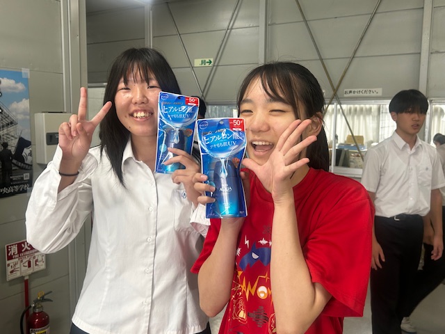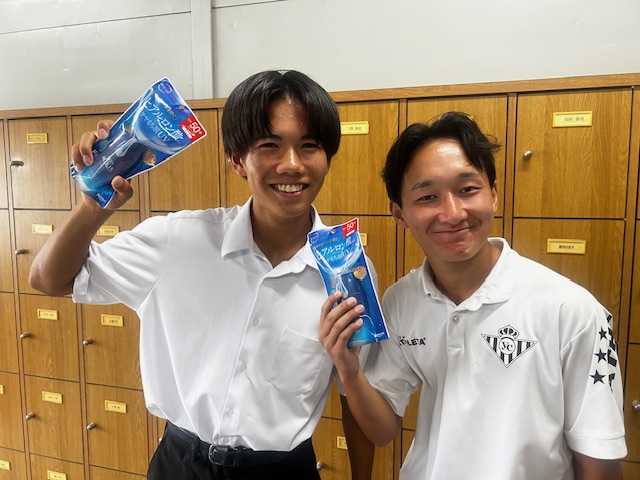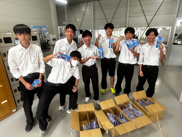 公開日 2025年10月03日 【報告】先日の海浜清掃に関するギネス世界記録挑戦に御賛同いただいたロート製薬様より,日焼け止めを御提供いただき、参加した生徒と挑戦に協力してくれた生徒に配布をしました。10月4日と13日の海浜清掃はもちろん、体育祭でも利用します。 私たちの活動に賛同していただけたこと、ともに海をきれいにしようとする思いが広がっていることがとても嬉しいです! ロート製薬様、ありがとうございました。