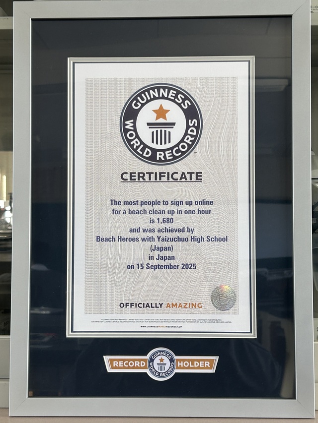 The most people to sign up online for a beach clean up in one hour is 1,680 and was achieved by Beach Heroes with Yaizuchuo High School (Japan) in Japan on 15 September 2025.
