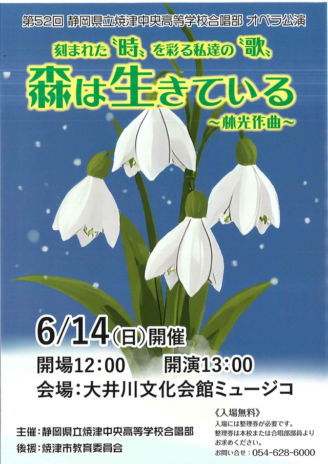 本校合唱部のオペラ公演も今年で第52回を迎えることとなりました。今回は邦人作曲家林光氏のオペラ「森は生きている」を公演いたします。