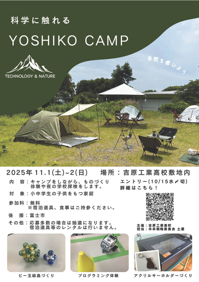 本校では、野外宿泊しながら、楽しくものづくり体験することを目的とし、